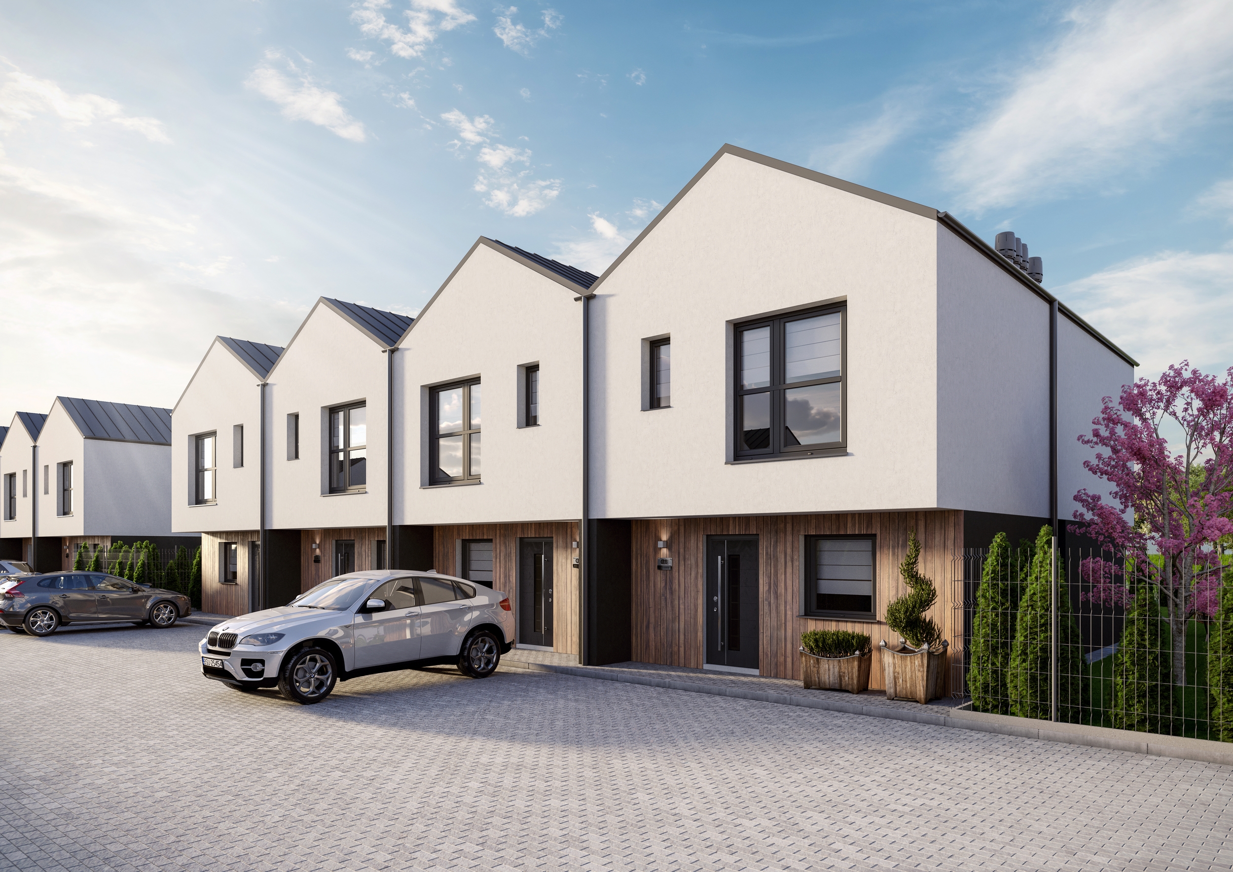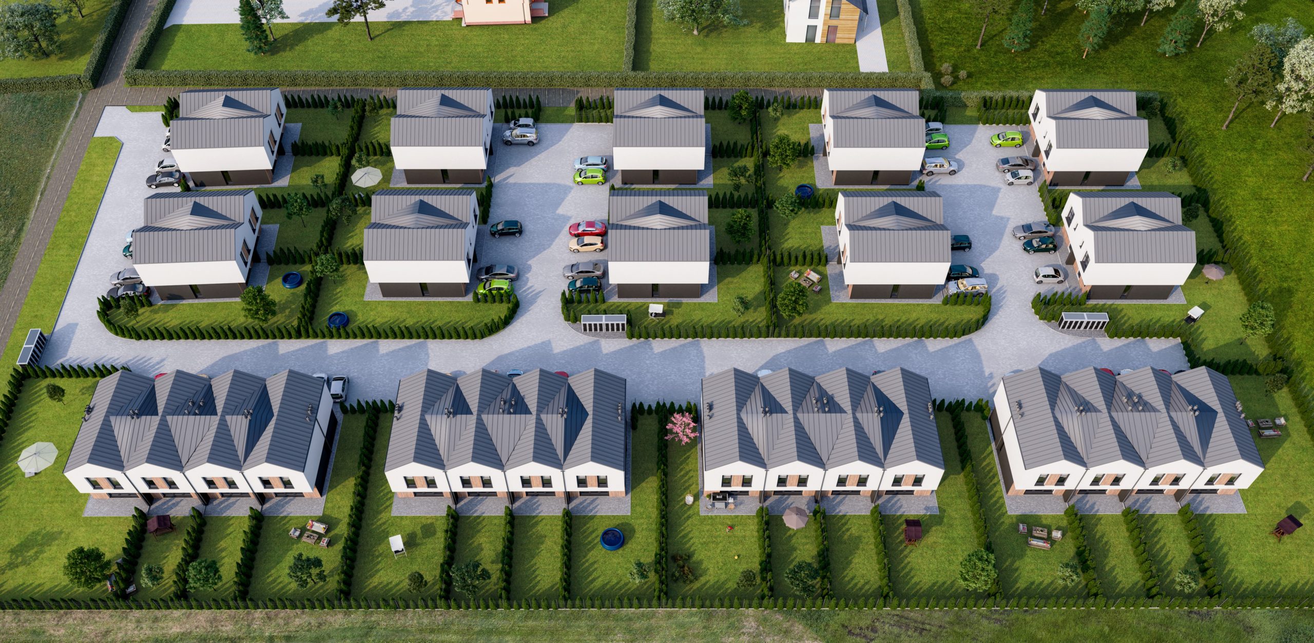Osiedle będzie liczyło 36 wygodnych, blisko 100 metrowych domów z dużym salonem. Prywatność zapewnią nawet 350 metrowe ogrody. Bezpośrednio przy domach, po 2 miejsca parkingowe i opcjonalna wiata garażowa.